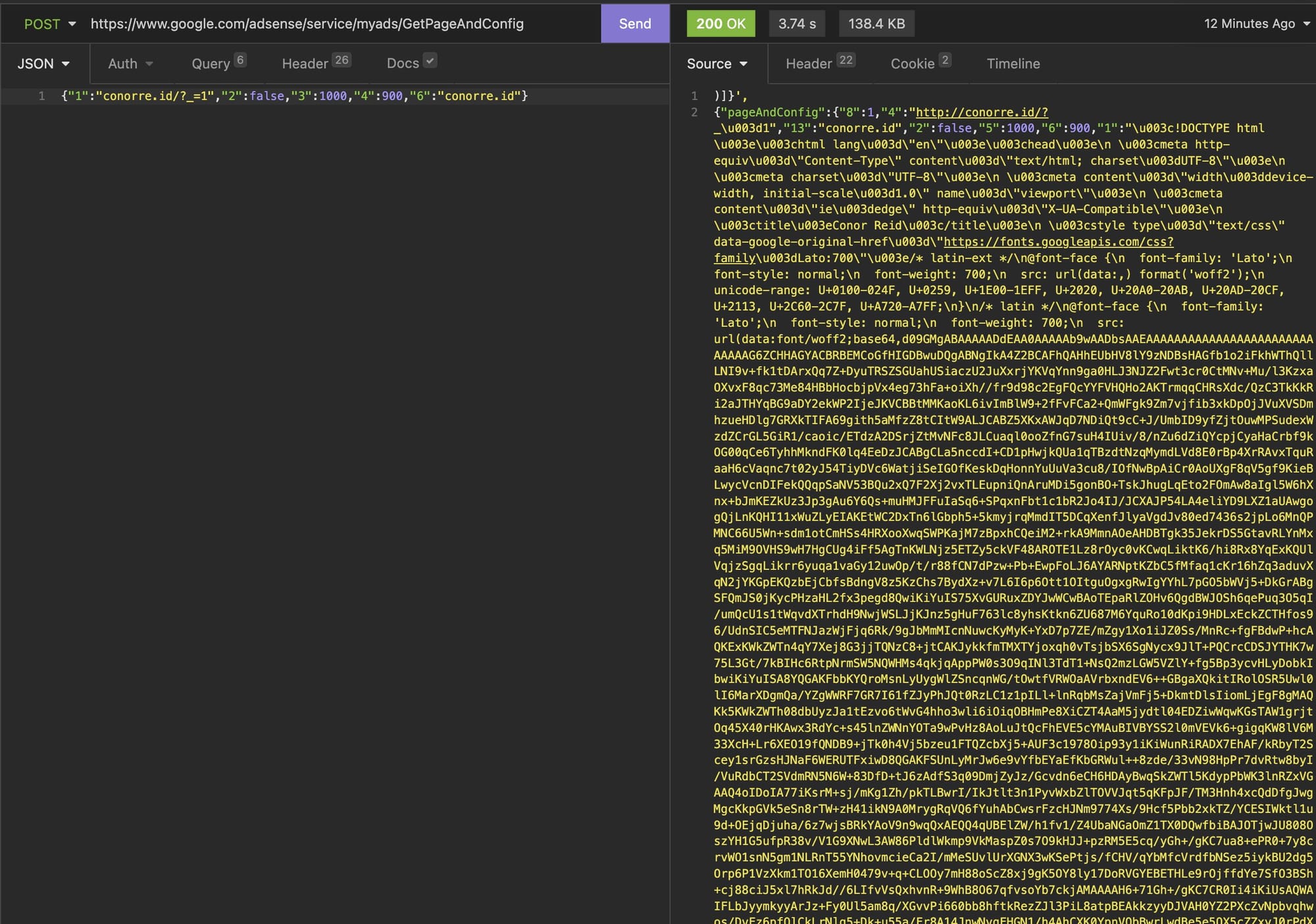 The request was simple — Google would fetch your website, inject the ad preview, and show you the result. But here's what caught my eye: the domain parameter wasn't validated on the server side.